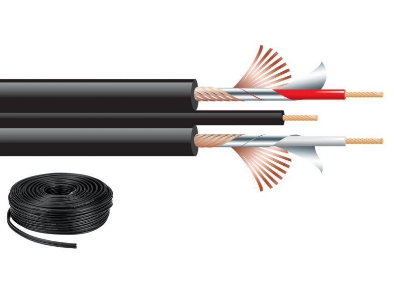Audio cable “HIGHLY FLEXIBLE” 50 m coil 2 x 0.29 mm2 + 1 x 0.2 mm2 Double shielding Outside diameter: 2 x Ø 5.5 mm + 1 x Ø 1.5 mm Cable capacitance: 165 pF/m Extra moulded wire, e.g. as control wire for car amplifiers or as ground wire for record p...