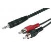 Audio adapter cable For connecting audio devices, e.g. portable multimedia player 1 x 3.5 mm stereo plug 2 x RCA plug Length: 2 m Manufacturer information: MONACOR INTERNATIONAL GmbH & Co. KGKonsul-Smidt-Str. 6828217 BremenGermanyinfo@monacor.c...