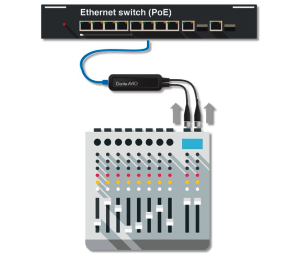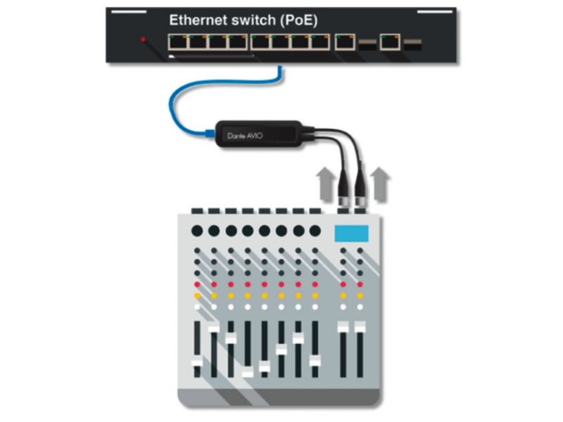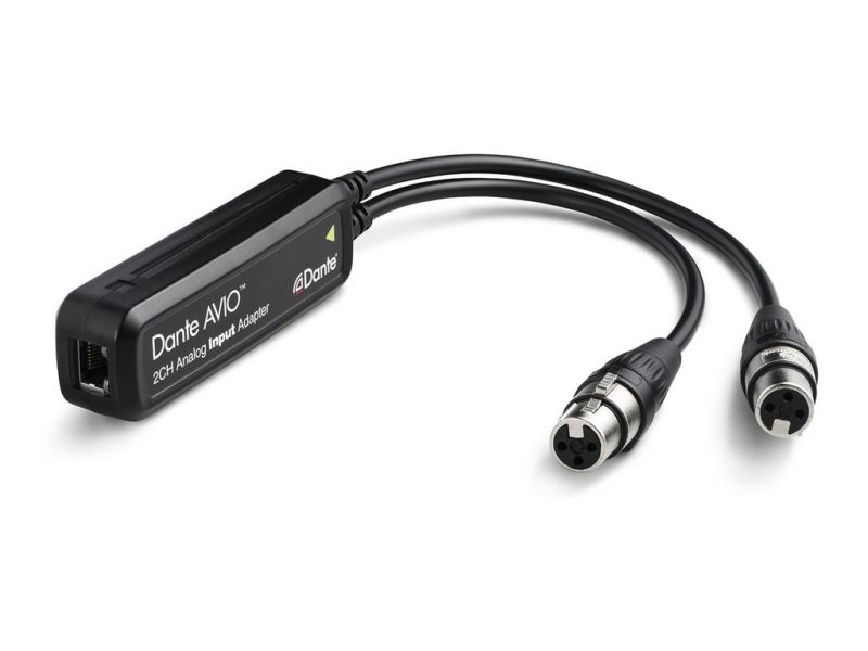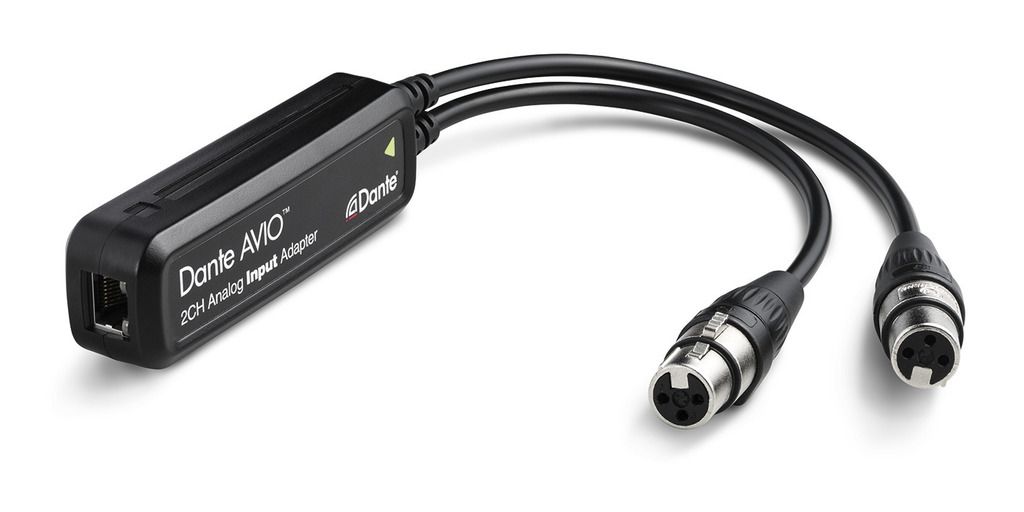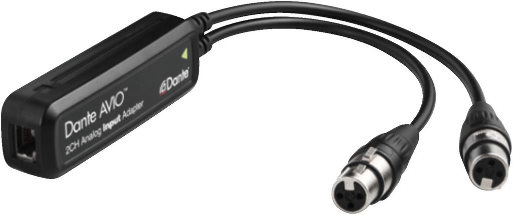 Dante® AVIO analogue input adapter (2-channel) For connecting analogue audio line level devices (e.g. mixer) to a Dante® audio network Adjustable signal level: +24/+4/0 dBu, 0/-10 dBV (via Dante® controller) Frequency range: 20-20,000 Hz Impedance: 2...