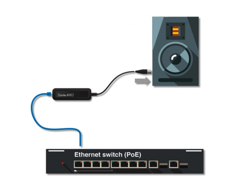 Dante® analogue output adapter (1-channel) For connecting analogue audio line level devices (e.g. active speakers) to a Dante® audio network Adjustable signal level: +18/+4/0 dBu, 0/-10 dBV (via Dante® controller) Frequency range: 20-20,000 Hz Impeda...