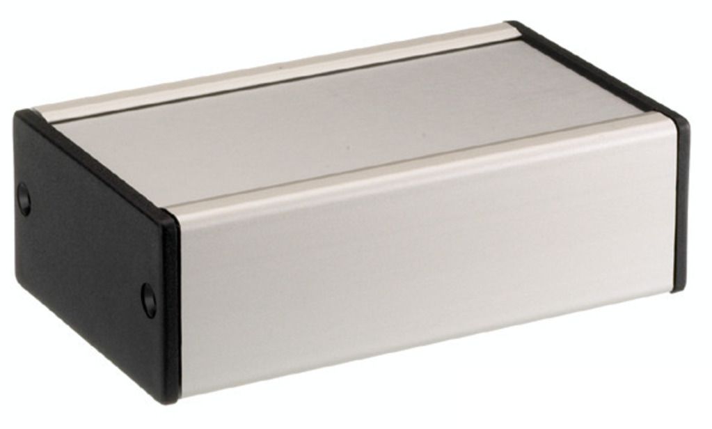 Utility case Extruded u-shaped profile with insertion grooves for printed circuits Exchangeable front panel with protective foil, 1.5 mm aluminium sheet metal Mat black ABS plastic side covers Material surface: anodised and mat etchedTotal height: 36...