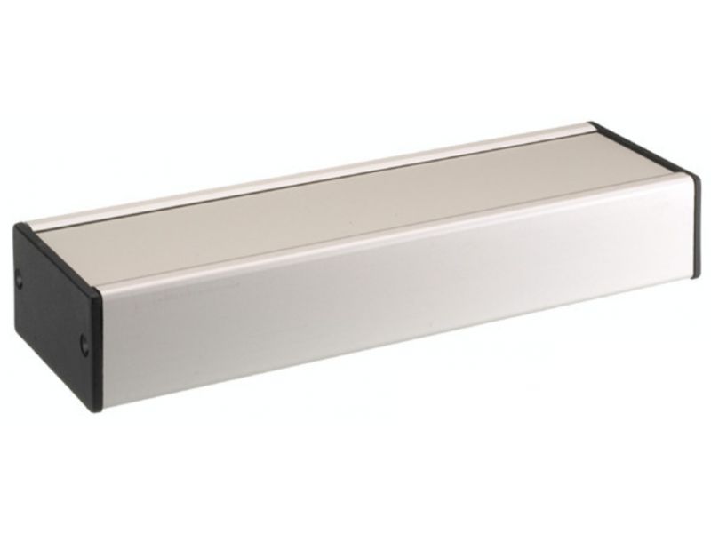 Utility case Extruded u-shaped profile with insertion grooves for printed circuits Exchangeable front panel with protective foil, 1.5 mm aluminium sheet metal Mat black ABS plastic side covers Material surface: anodised and mat etchedTotal height: 36...
