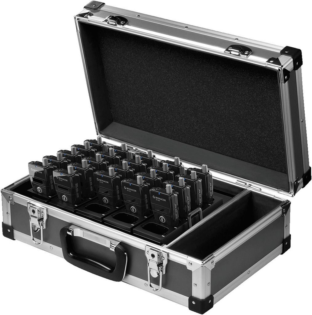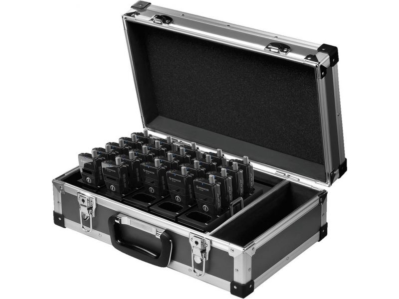 Transport case with integrated charging function and programming function, for transmitters and receivers from the ATS-80 series. For simultaneously charging rech. batteries of up to 25 devices Each slot with LED for indicating battery charging sta...