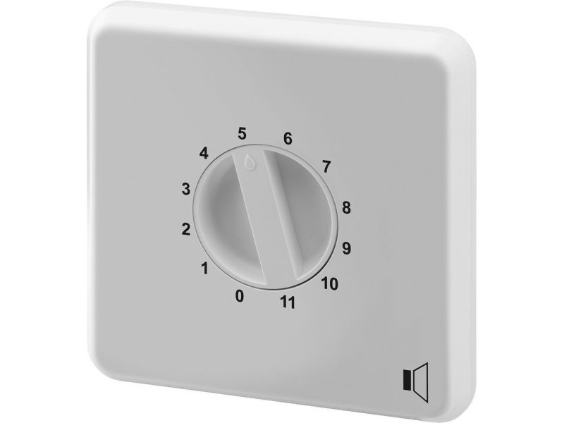 Wall-mounted PA volume control Power rating: 35 W Recessed control to prevent unintentional readjustment Attenuation in 11 steps and OFF Audio transformer for 100 V transmission technology White plastic front panel (removable) and knob Flush mountin...
