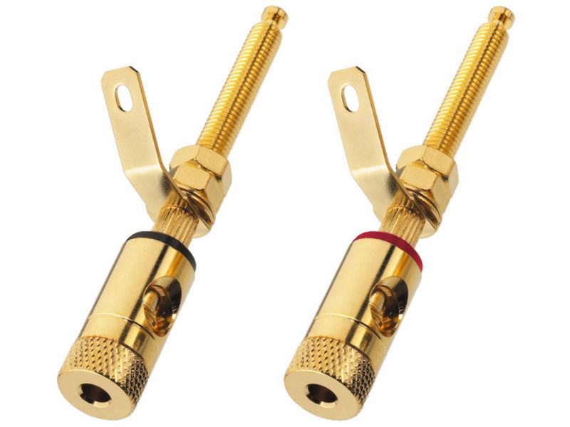 Pair of speaker pole terminals Robust gold-plated version To be screwed and plugged For wooden cabinets up to 33 mm Manufacturer information: MONACOR INTERNATIONAL GmbH & Co. KGKonsul-Smidt-Str. 6828217 BremenGermanyinfo@monacor.com