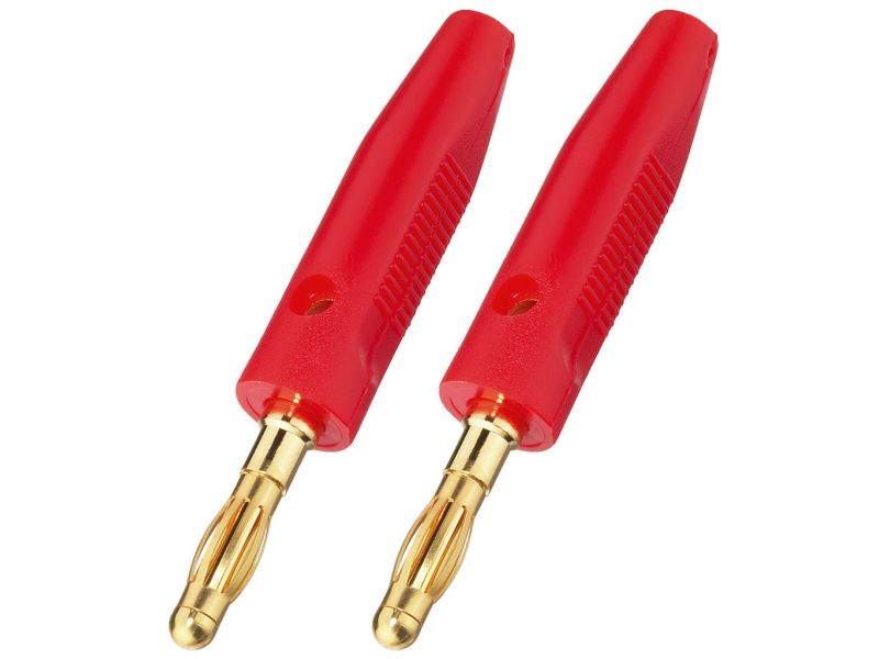Banana plugs for speakers, 4 mm With cross hole Spliced, gold-plated contact Screw contact PVC sleeve Manufacturer information: MONACOR INTERNATIONAL GmbH & Co. KGKonsul-Smidt-Str. 6828217 BremenGermanyinfo@monacor.com