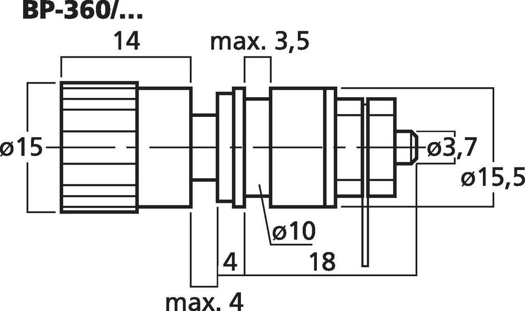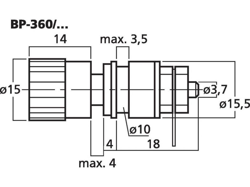 Binding post for speakers With cross hole Standard version Manufacturer information: MONACOR INTERNATIONAL GmbH & Co. KGKonsul-Smidt-Str. 6828217 BremenGermanyinfo@monacor.com