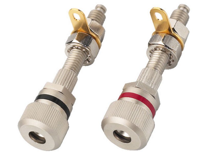 Pair of speaker pole terminals Nickel-plated version To be screwed and plugged For wooden cabinets up to 25 mm Uninsulated Manufacturer information: MONACOR INTERNATIONAL GmbH & Co. KGKonsul-Smidt-Str. 6828217 BremenGermanyinfo@monacor.com