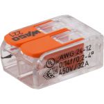 Connecting terminal from WAGO 2-conductor terminal with operating levers Wires and cross sections can individually be combined from 0.14 to 4 mm2 Power rating: 450 V/32 A Continuous operating temperature: up to 85 °C Correct position of the conductor...
