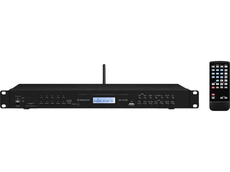 CD and MP3 player, with Bluetooth receiver, USB port and SD card slot. Bluetooth receiver for wireless connection of laptops, smartphones or tablet PCs USB storage media can be connected directly For SD cards (SD/SDHC/SDXC) up to 128 GB (FAT16/FAT3...