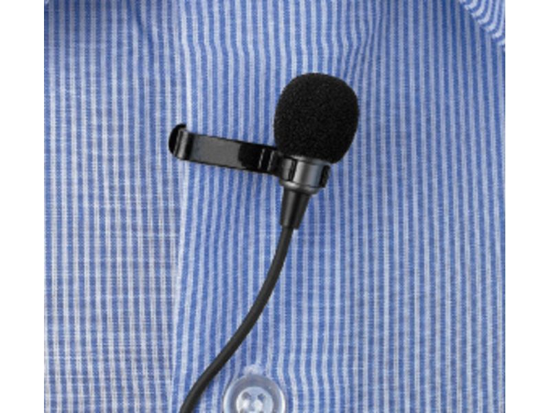 Electret lavalier microphone For presentations and discussions Good audibility, secure fit due to supplied tie clip, easy to attach Cardioid polar pattern Allows to pick up a precise voice of high quality over a wide dynamic range Supplied with winds...