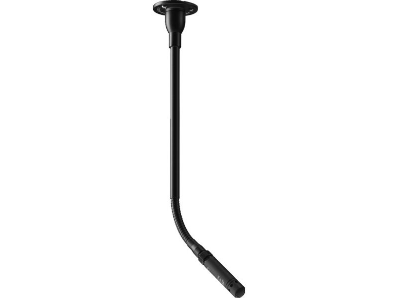 Overhead hanging electret microphone For suspended installations, especially suitable for applications in which a direct microphonic effect is undesired for optical or operational reasons, e.g. sound pickup of choirs or on theatre stages or school st...