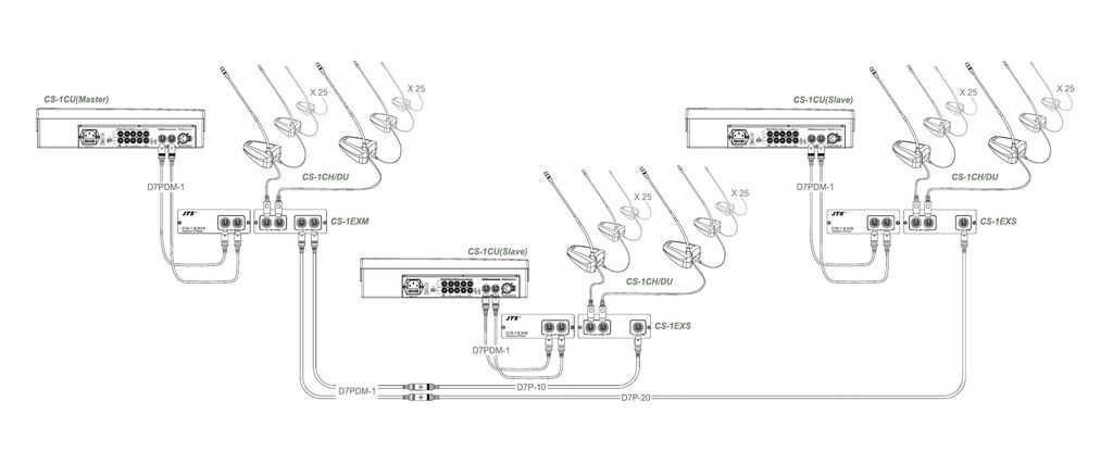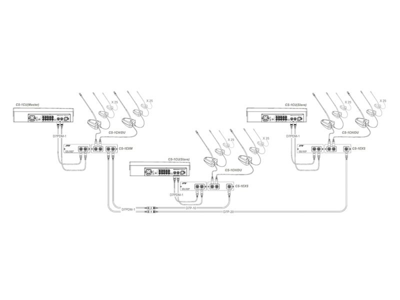 Extension unit for microphone stations, master Extension for conference system CS-1, for extending from 50 to up to 150 microphone stations Power supply via control unit CS-1CU Connection via 6 x 7-pole DIN jack Manufacturer information: JTS PR...