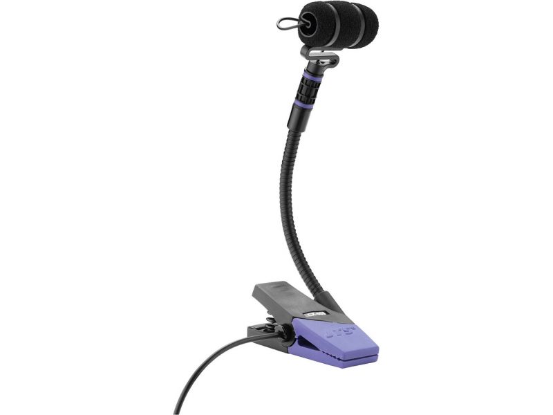 Electret instrument microphone For sound pickup of wind instruments Wide dynamic range Crystal-clear and crisp sound Integrated spring-type clamp for attaching to funnel of a wind instrument Robust gooseneck, can be turned by 230° Design of low struc...