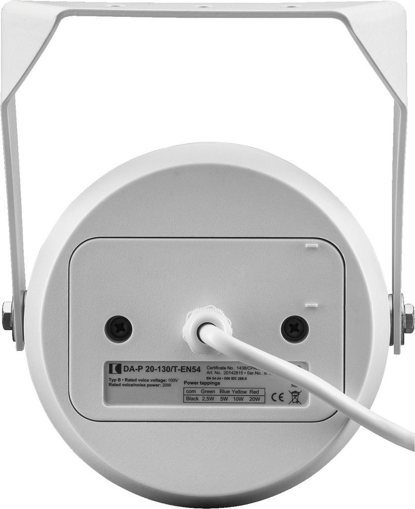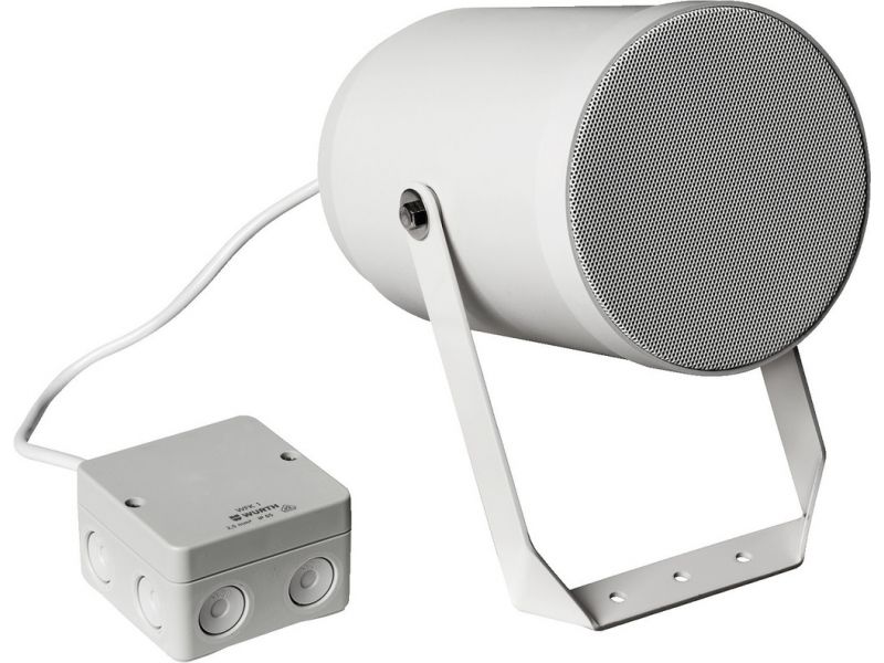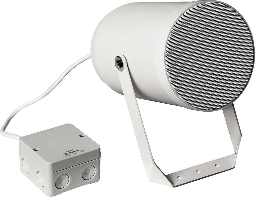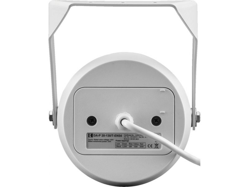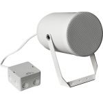 Weatherproof PA sound projector, for wall mounting and with EN 54-24 certification. 100 V transmission technology 13 cm waterproof full range speaker 100 V transformer with power taps 20/10/5/2.5 W Connection via ceramic terminal and thermal fuse i...