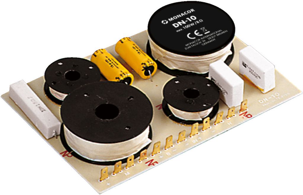 3-way crossover network for 8 Ω High-quality componentsFilm capacitors in the high-pass filter Manufacturer information: MONACOR INTERNATIONAL GmbH & Co. KGKonsul-Smidt-Str. 6828217 BremenGermanyinfo@monacor.com