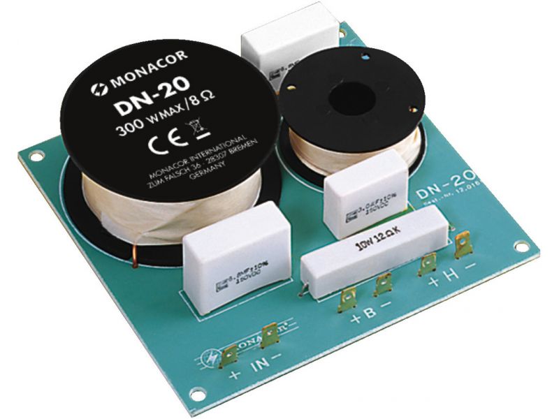 2-way crossover network for 8 Ω For hi-fi applicationsIdeal in combination with high-quality speakers Manufacturer information: MONACOR INTERNATIONAL GmbH & Co. KGKonsul-Smidt-Str. 6828217 BremenGermanyinfo@monacor.com
