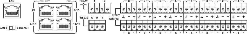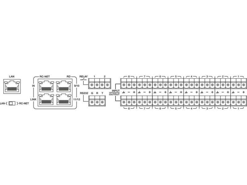 - 4 digital inputs and 4 digital outputs for the extensions DRM-884RC, DRM-884IOP and DRM-VAP