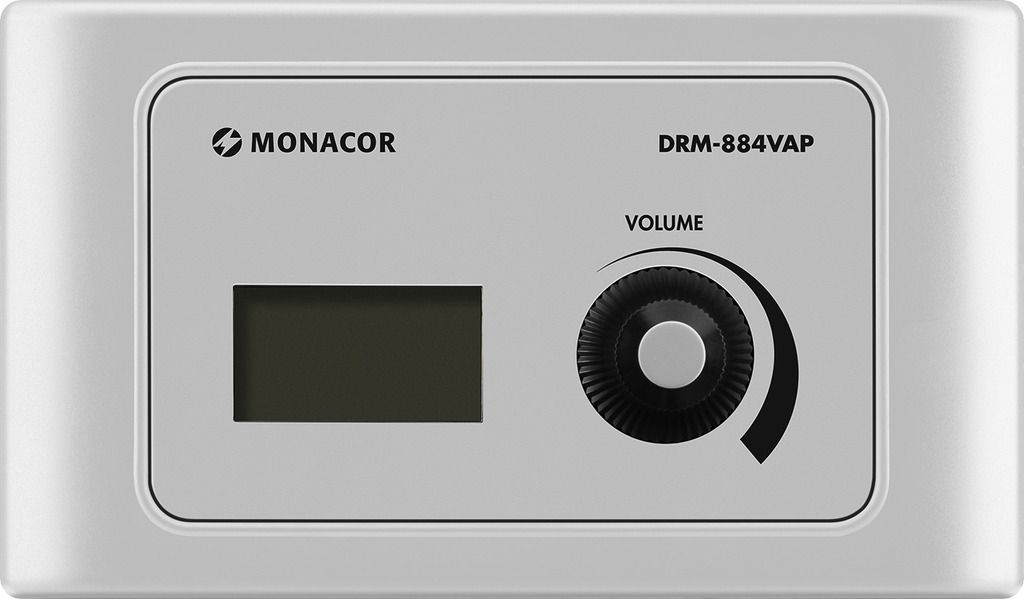 Wall module, for remote control of audio matrix router DRM-884. Intended application: volume control with audio output LCD Volume control Connection to DRM-884 via RJ45 jack and Cat. 5e network cable (supplied w/o cable), cable length up to 100 m...