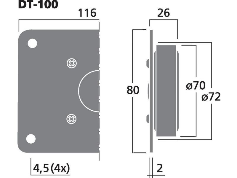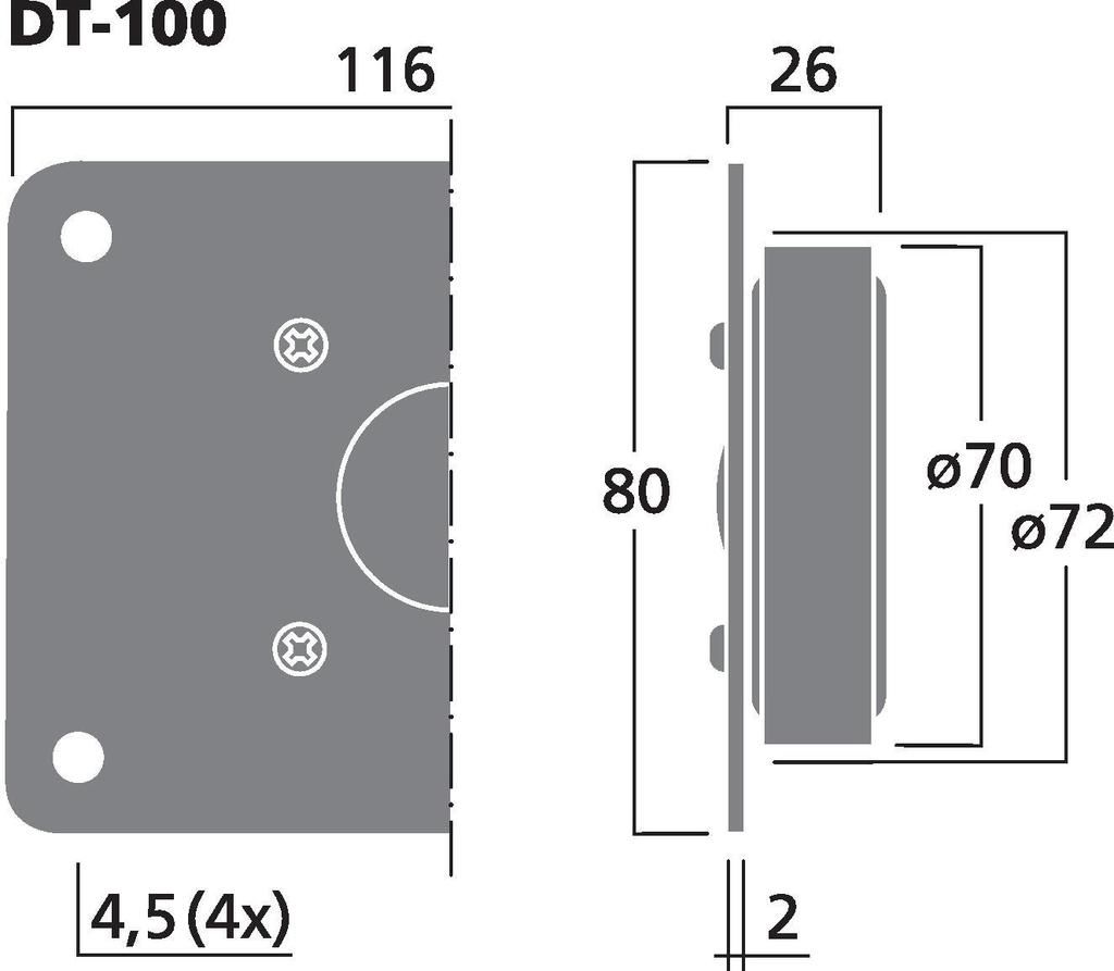Hi-fi dome tweeter, 30 W, 8 Ω Soft dome of high power capability, classic rectangular size Ferrofluid Good linearity with extra brilliant characteristics Reproduction rich in detail Manufacturer information: MONACOR INTERNATIONAL GmbH & Co. KGK...