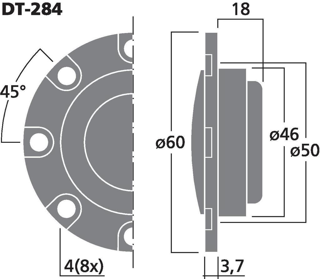 The Tweeter for Perfect Car Hi-fi Applications: DT-284 “The Dome”. This tweeter provides everything expected from a top class tweeter: a sensationally linear frequency response, high level reserves, low crossover frequency, compact size and a distinc...