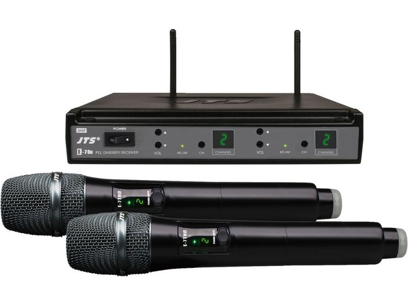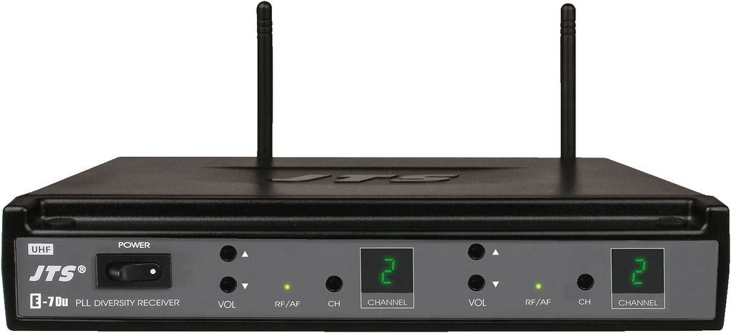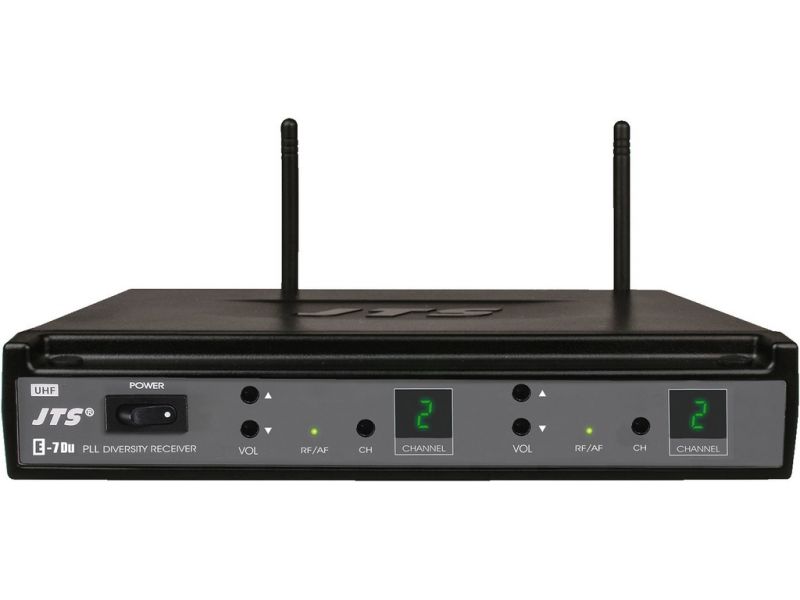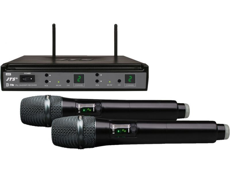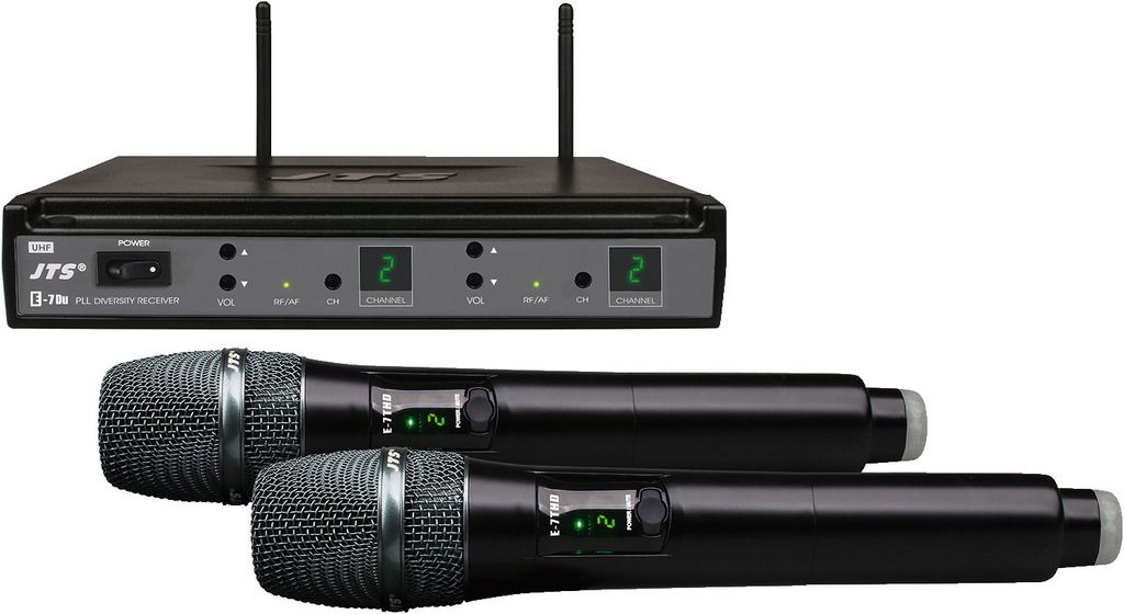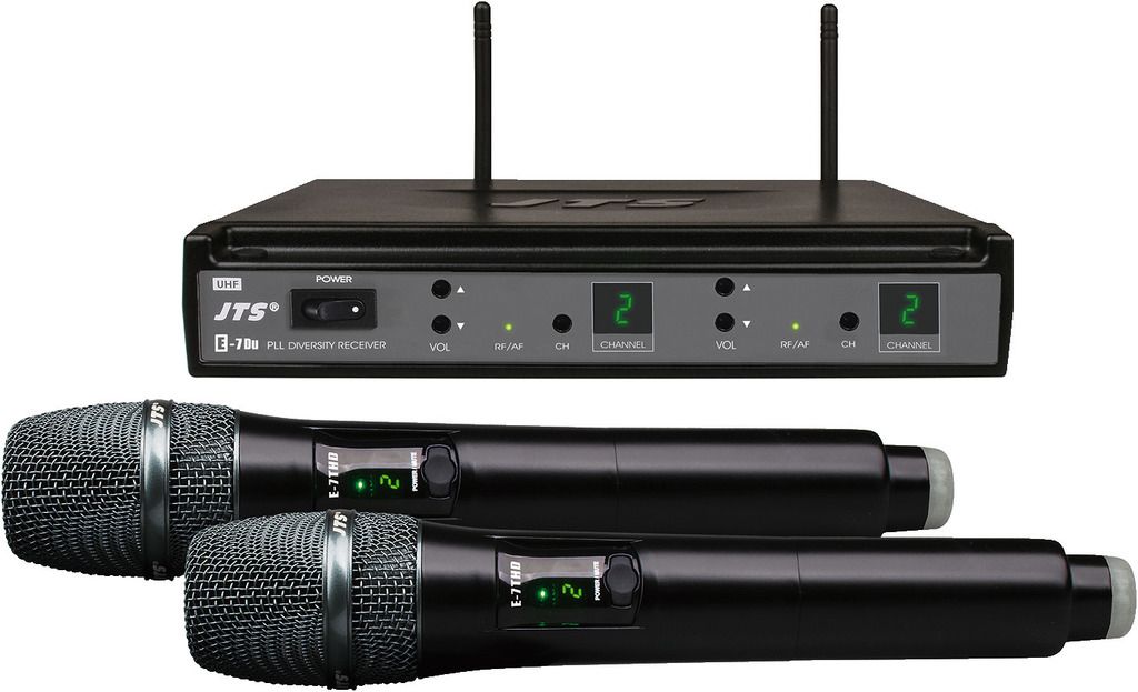 UHF PLL audio transmission set, consisting of: 2-channel diversity UHF PLL receiver E-7DU/5 Hand-held UHF PLL condenser transmitter (set of 2) E-7THD/5 Carrier frequency range: 504-542 MHzFor specifications, please refer to the individual items....