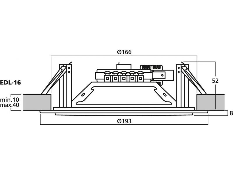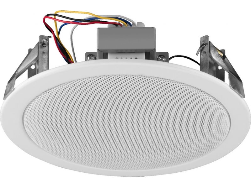 PA ceiling speaker 100 V transmission technology 15 cm (6") full range speaker Metal housing with protective speaker grille Power taps: 10/6/3/1.5 W Quick-mounting facility with spring clips Connection via spring-loaded terminal For a ceiling thickn...