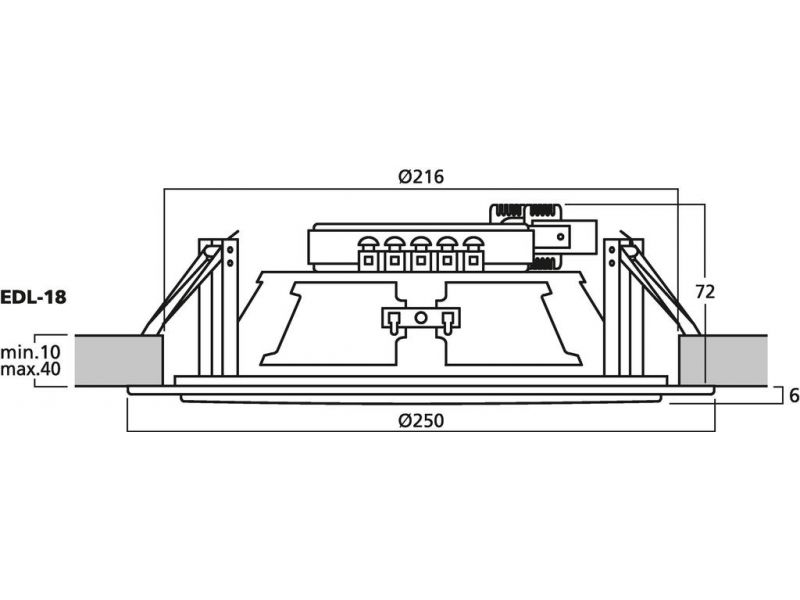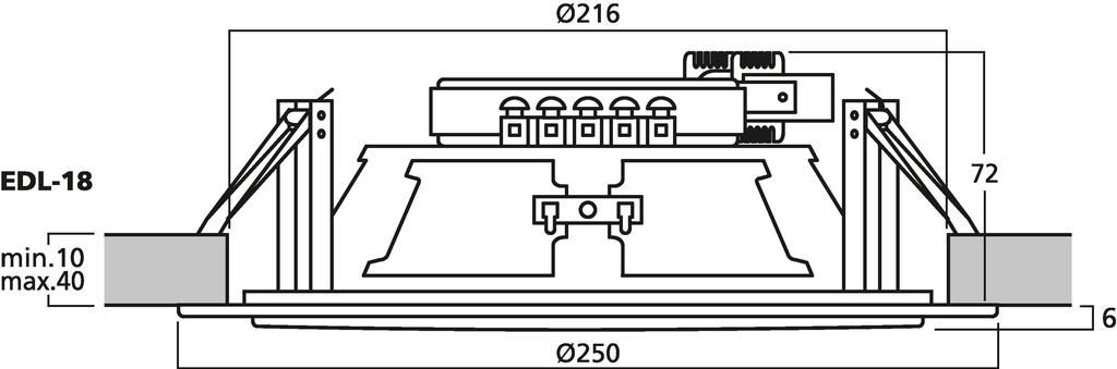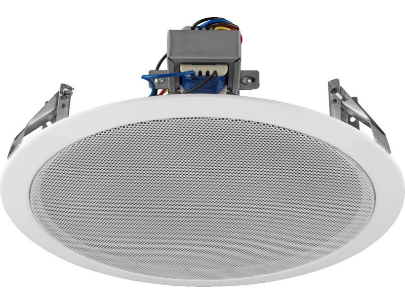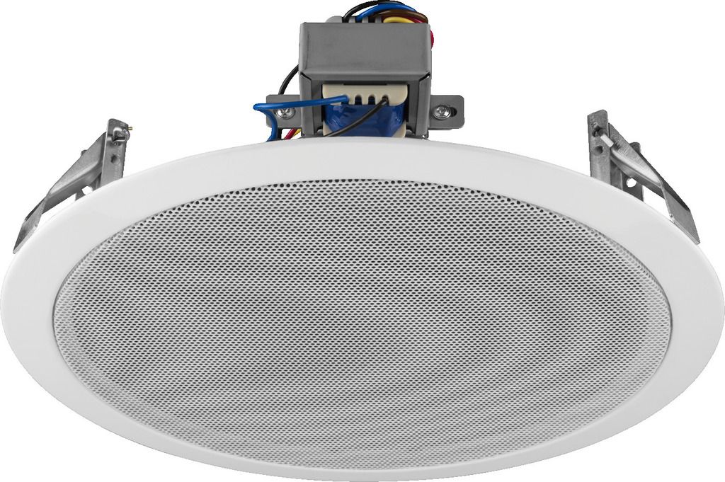 PA ceiling speaker 100 V transmission technology 20 cm (8") full range speaker Metal housing with protective speaker grille Power taps: 10/6/3/1.5 W Quick-mounting facility with spring clips Connection via spring-loaded terminal For a ceiling thickne...