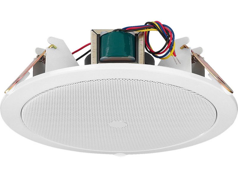 PA ceiling speaker 100 V transmission technology via audio transformer with 3 power taps 12/6/3 WFor a ceiling thickness from 5 to 22 mm Type 165 full range speakerA more powerful reproduction of the range of fundamental notes Robust metal version (b...