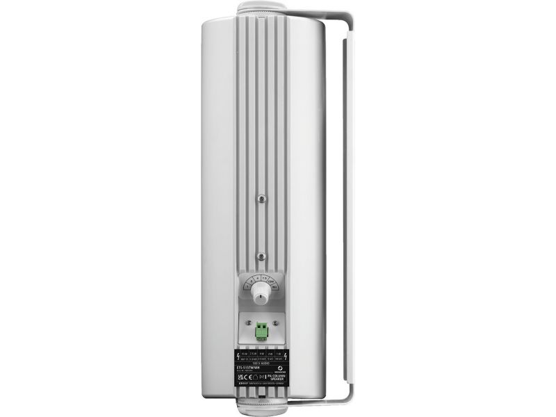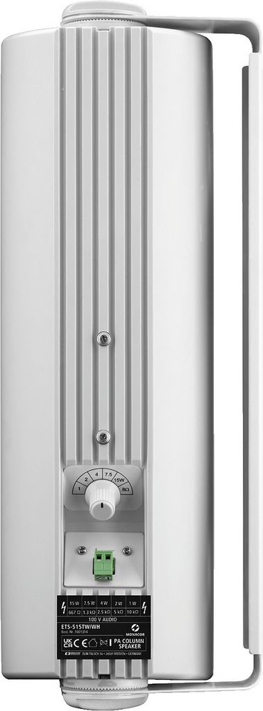PA column speaker 100 V transmission technology or 8 Ω operation 2-way version (with additional integrated tweeter for a clearly improved sound) Integrated crossover network 6-step power selector switch with 8 Ω selection 2 x 6 mm threaded bushing P...