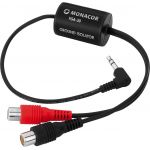 Ground isolator, compact design, for preventing signal interference and hum loops which may occur, e.g. when connecting PC sound cards or laptops to an amplifier. Galvanically isolated inputs and outputs 2 RCA jacks 3.5 mm stereo plug Input/output...