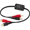 Ground isolator, compact design, for preventing signal interference and hum loops which may occur, e.g. when connecting PC sound cards or laptops to an amplifier. Galvanically isolated inputs and outputs 2 RCA jacks 2 RCA plugs Input/output impedan...