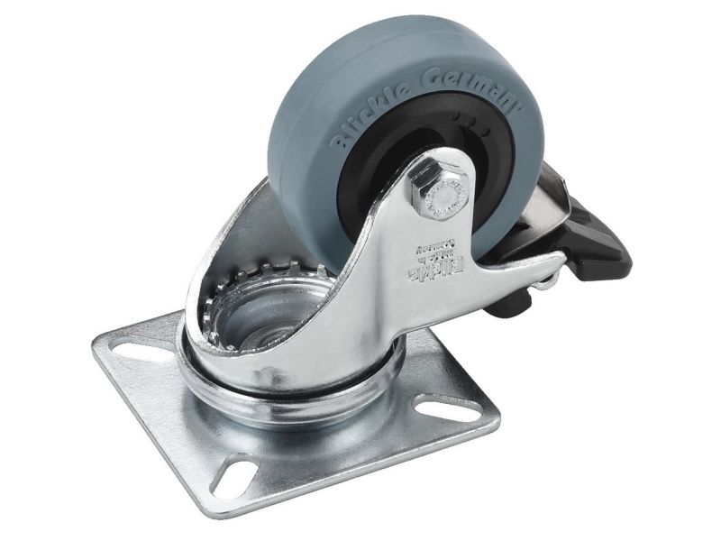 Swivel castor, wheel: Ø 50 mm, with brake From Blickle For transporting e.g. PA speaker systems or cases Castor wheels with plain bearing and ball bearing guidance All-rubber castor wheels, non-marking Zinc-plated metal parts Manufacturer informa...