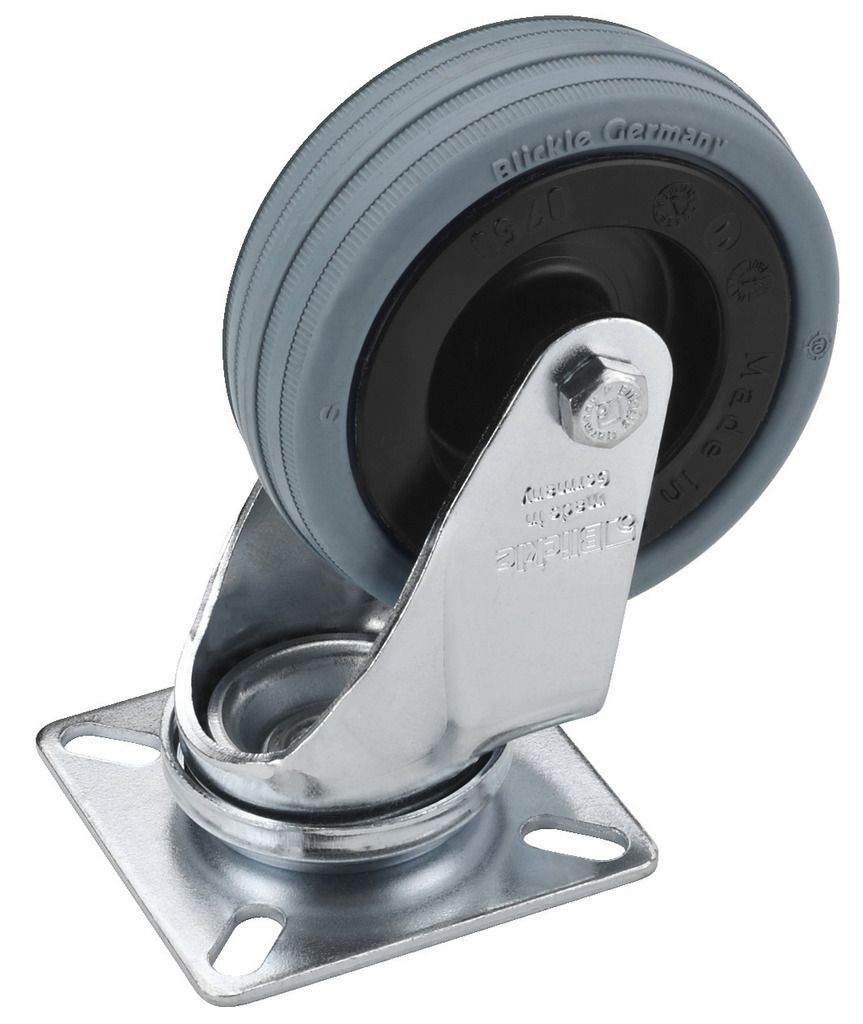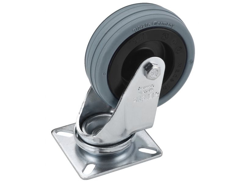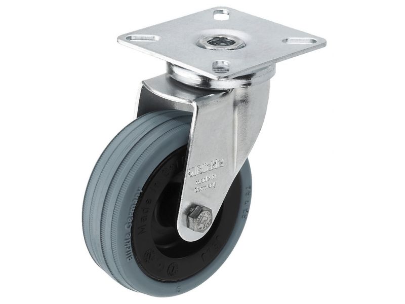 Swivel castor, wheel: Ø 75 mm From Blickle For transporting e.g. PA speaker systems or cases Castor wheels with plain bearing and ball bearing guidance All-rubber castor wheels, non-marking Zinc-plated metal parts Manufacturer information: Blic...