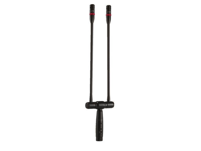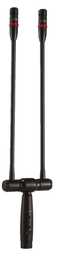 Double gooseneck microphones with LED Back electret supercardioid cartridges High sensitivity 10 dB attenuator Low cut switch LED for indicating operating status Flexible positioning due to vertically adjustable goosenecks (160°) Common 3-pole XLR pl...