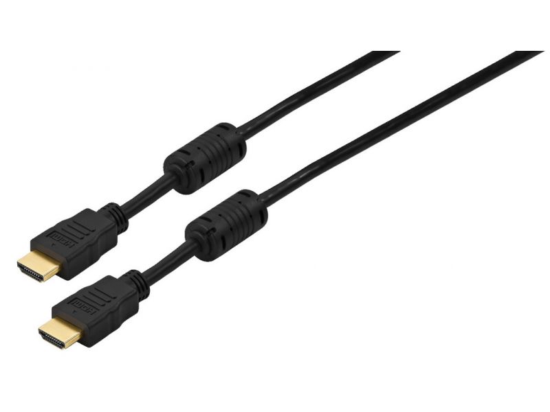 High Speed HDMI™connection cable (High Definition Multimedia Interface) for high-resolution transmission of digital video and audio data. Ethernet Supports audio return channel Conform to HDCP Suitable for 3D 2 ferrite cores for an interference-fre...