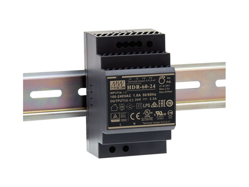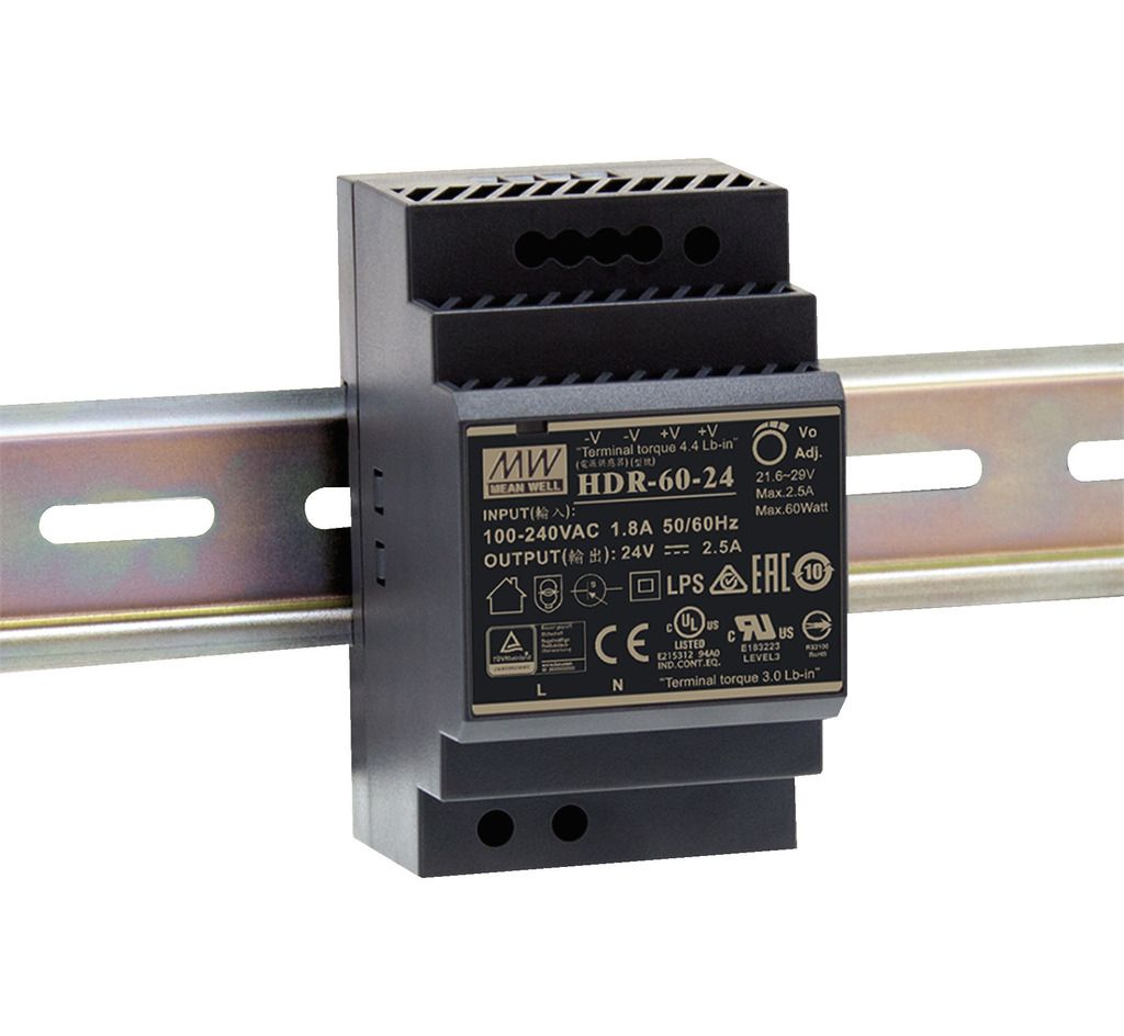 Switch-mode power supply, 60 W For mounting onto DIN rails TS35, e.g. on distributions boards, meter panels, in fuse boxes or control cabinets Universal input voltage: ˜ 85-265 V/47-63 Hz Output voltage: DC 24 V/2.5 A Low no-load power consumption: <...