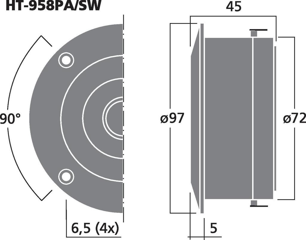 Ring radiator tweeter, 30 W, 8 Ω For PA and hi-fi High efficiency Very wide bandwidth radiation with an excellent linearity Manufacturer information: MONACOR INTERNATIONAL GmbH & Co. KGKonsul-Smidt-Str. 6828217 BremenGermanyinfo@monacor.com