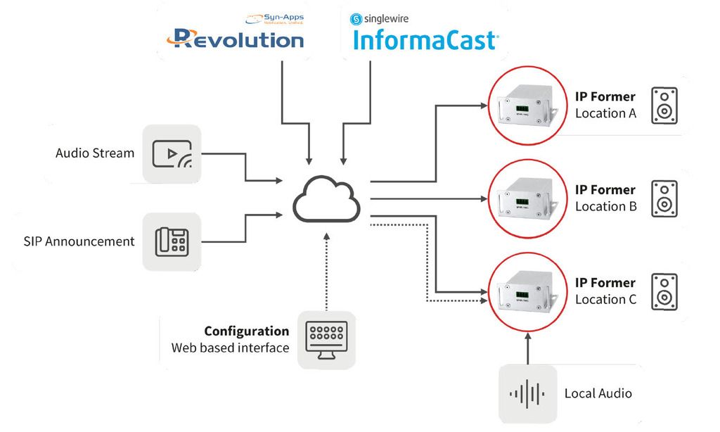 IP audio decoder The IP-FORMER converts passive speakers into network speakers and thus enables audio streaming via the Internet to existing passive speakers Due to its compact design, the IP-FORMER can be mounted directly to the existing passive spe...