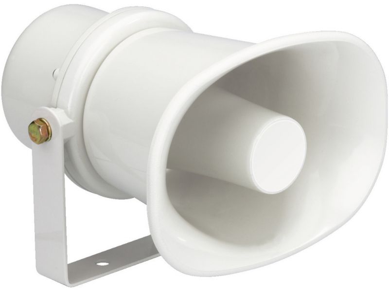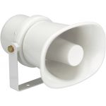 Horn speaker 100 V transmission technology Weatherproof and IP66 tested Protected against powerful water jets Power selector switch For open-air events, industrial use, in workshops Manufacturer information: MONACOR INTERNATIONAL GmbH & Co. KGK...