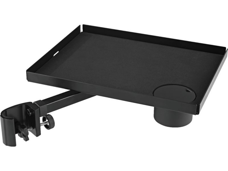 Tray, 250 x 330 mm Tray For mixers, controllers, tablet PCs, percussion instruments and music accessories Locking clip for mounting to microphone stand (tube diameter: up to 30 mm) Usable tray space: 250 x 330 mm Including holder for cups or can...