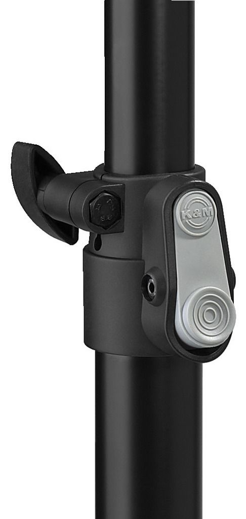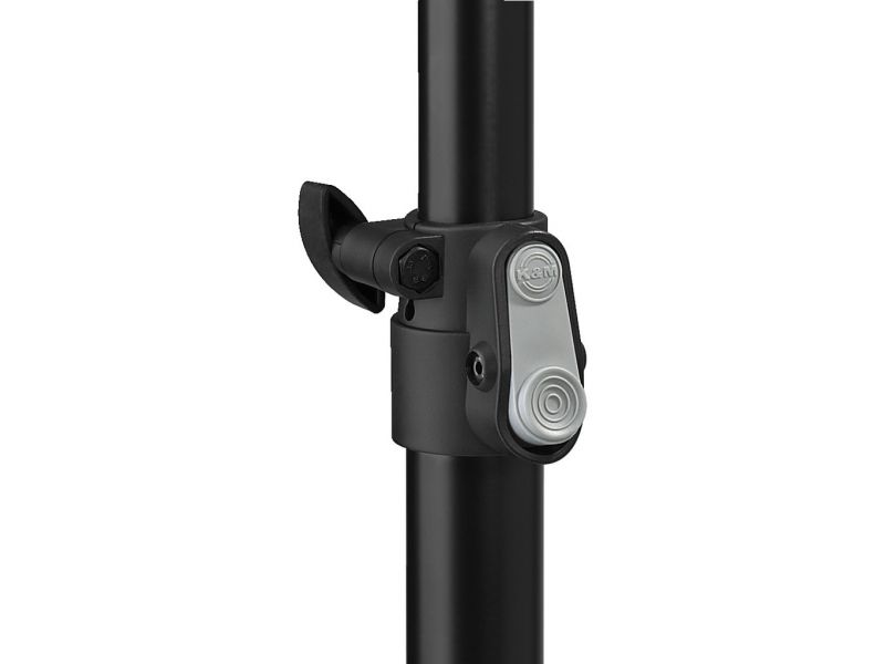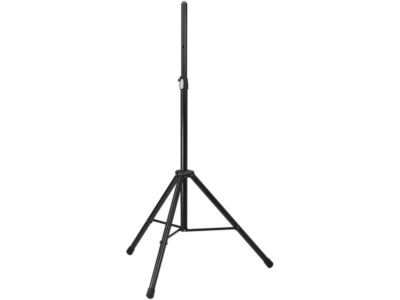 Speaker stand Robust steel version, mat black lacquered Height adjustable in 5 steps (144-223 cm), user-friendly locking due to push-button system, additionally secured via locking screw Integrated shock absorber 35 mm spigot Max. load/central weight...