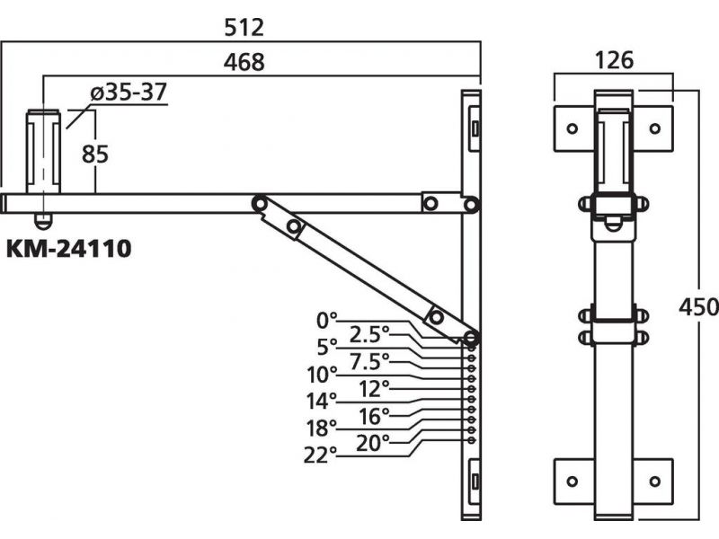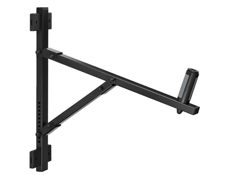 Wall bracket for PA speaker systems, with patented expanding mandrel for a secure and low-resonance connection between wall bracket and PA speaker system via movable plastic splints. Black lacquered special square steel tube design Tiltable (approx...