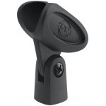 Microphone holder, Ø 17-22 mm, made of elastic plastic. Particularly suitable for wireless hand-held microphones with slim handle Thread: 16 mm (⅝") and 9 mm (⅜") Manufacturer information: KÖNIG & MEYER GmbH & Co. KGKiesweg 2 a97877 WertheimG...