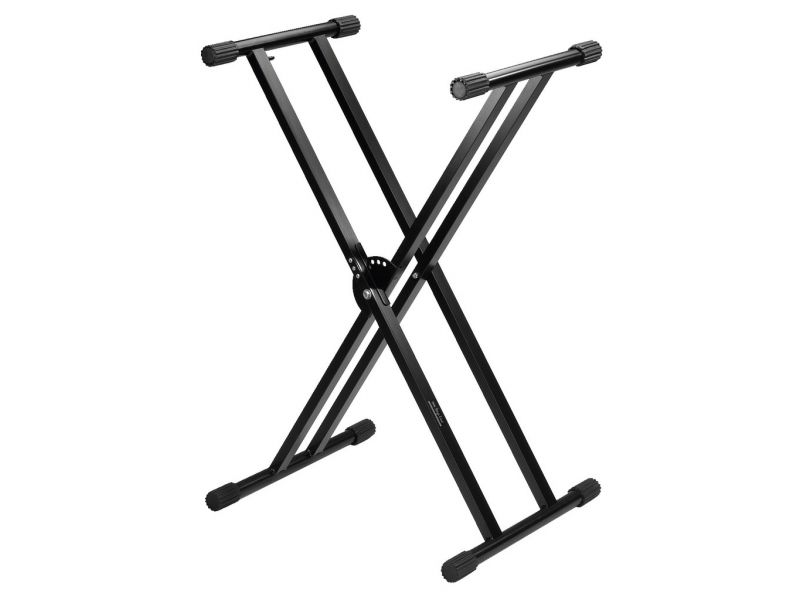 Universal stand Double brace steel version Lock-in with 7 locking positions, to be easily adjusted via lever at the upper side of the stand Feet can be adjusted in height to compensate floor unevenness Load capacity: 50 kg Support: 40 x 82 cm Max. he...