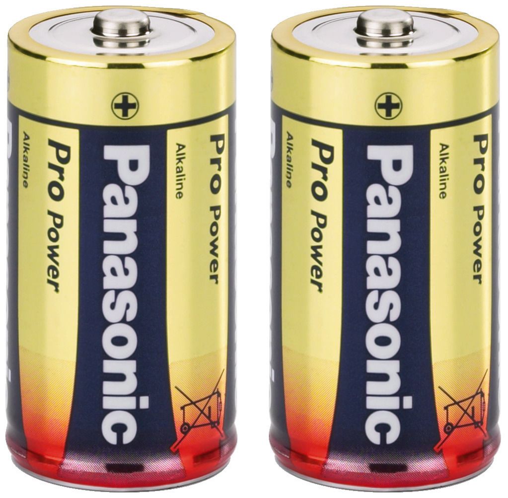 Alkaline batteries, C size, from PANASONIC. For consumers with high power consumption Long storage life 2 pcs. Manufacturer information: Panasonic Industry Europe GmbHCaroline-Herschel-Straße 10085521 OttobrunnGermanyhttps://support-de.panaso...