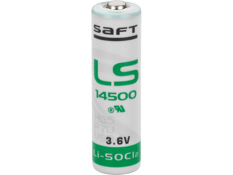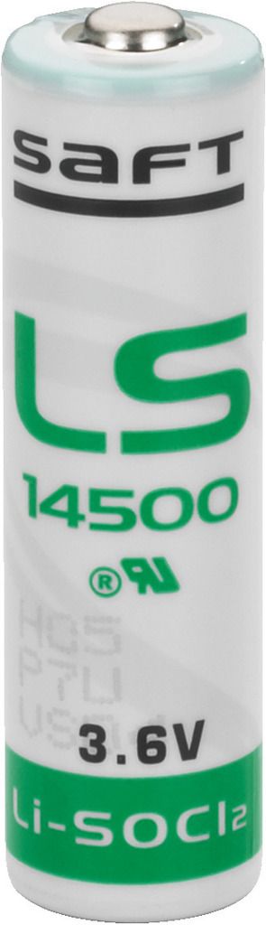 Lithium battery AA size Capacity: 3.6 V/2,450 mAh Dimensions: Ø 14 mm x 50 mm Weight: 14 g
