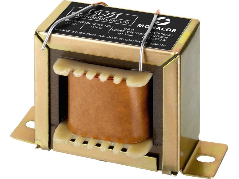 Transformer core coil, 2.2 mH High-quality crossover network coil of very high power rating, low distortion (vacuum-sealed) and minimum inside resistances, the first choice particularly for PA applications. Manufacturer information: MONACOR INT...