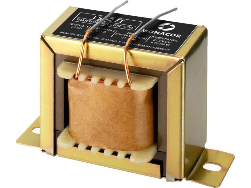Transformer core coil, 2.7 mH High-quality crossover network coil of very high power rating, low distortion (vacuum-sealed) and minimum inside resistances, the first choice particularly for PA applications. Manufacturer information: MONACOR INT...