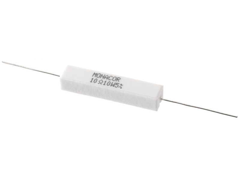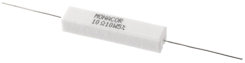 High-power cement resistor, 10 Ω, 10 W Resistor for use in crossover networks, especially for PA and top hi-fi applications, also to be connected as load resistors. Manufacturer information: MONACOR INTERNATIONAL GmbH & Co. KGKonsul-Smidt-Str....